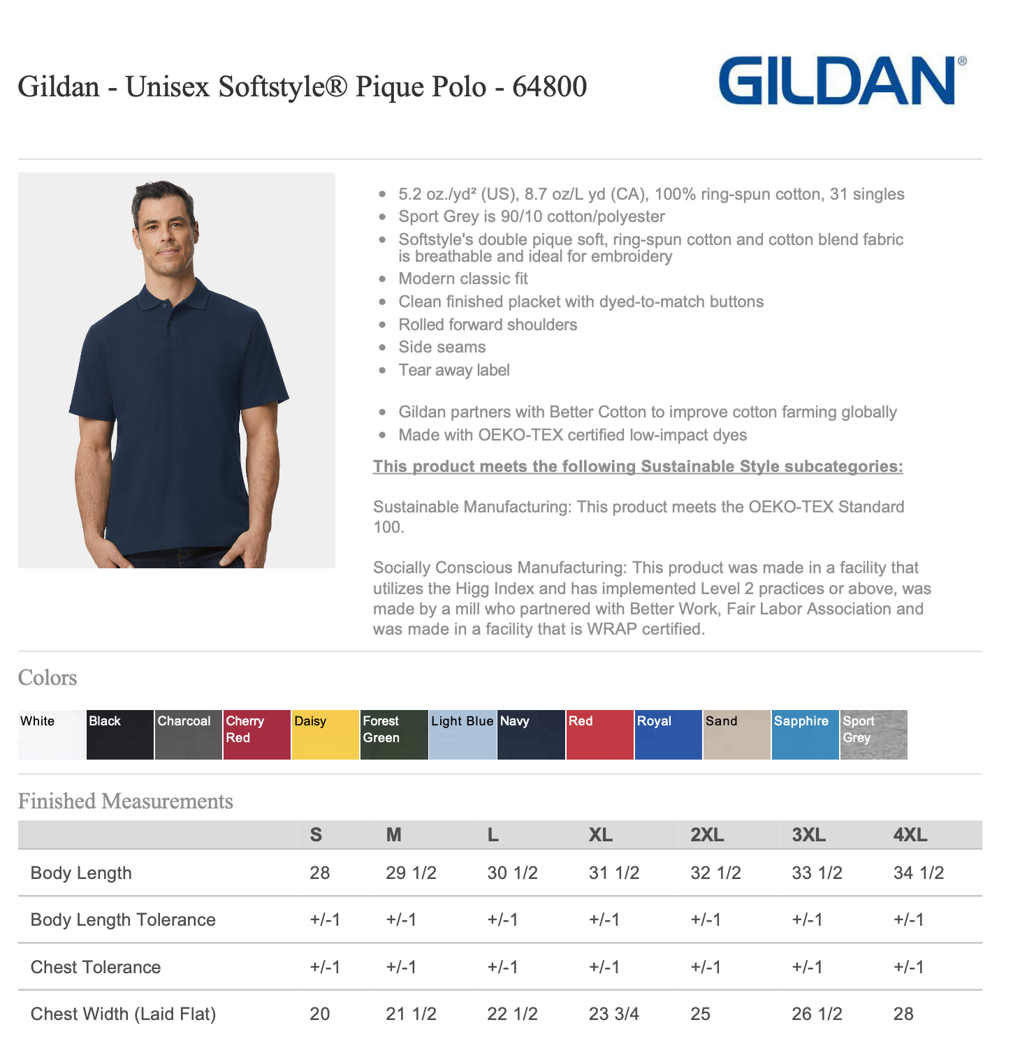 64800 – Gildan Unisex Softstyle® Pique Polo