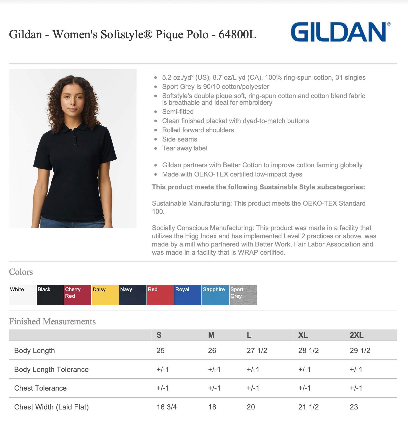64800L – Gildan Women’s Softstyle® Pique Polo
