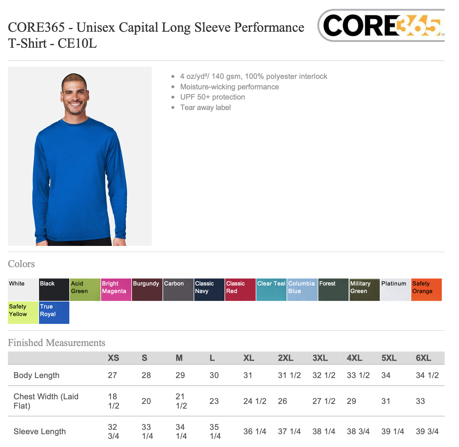 CE10L – CORE365 Unisex Capital Long Sleeve Performance T-Shirt
