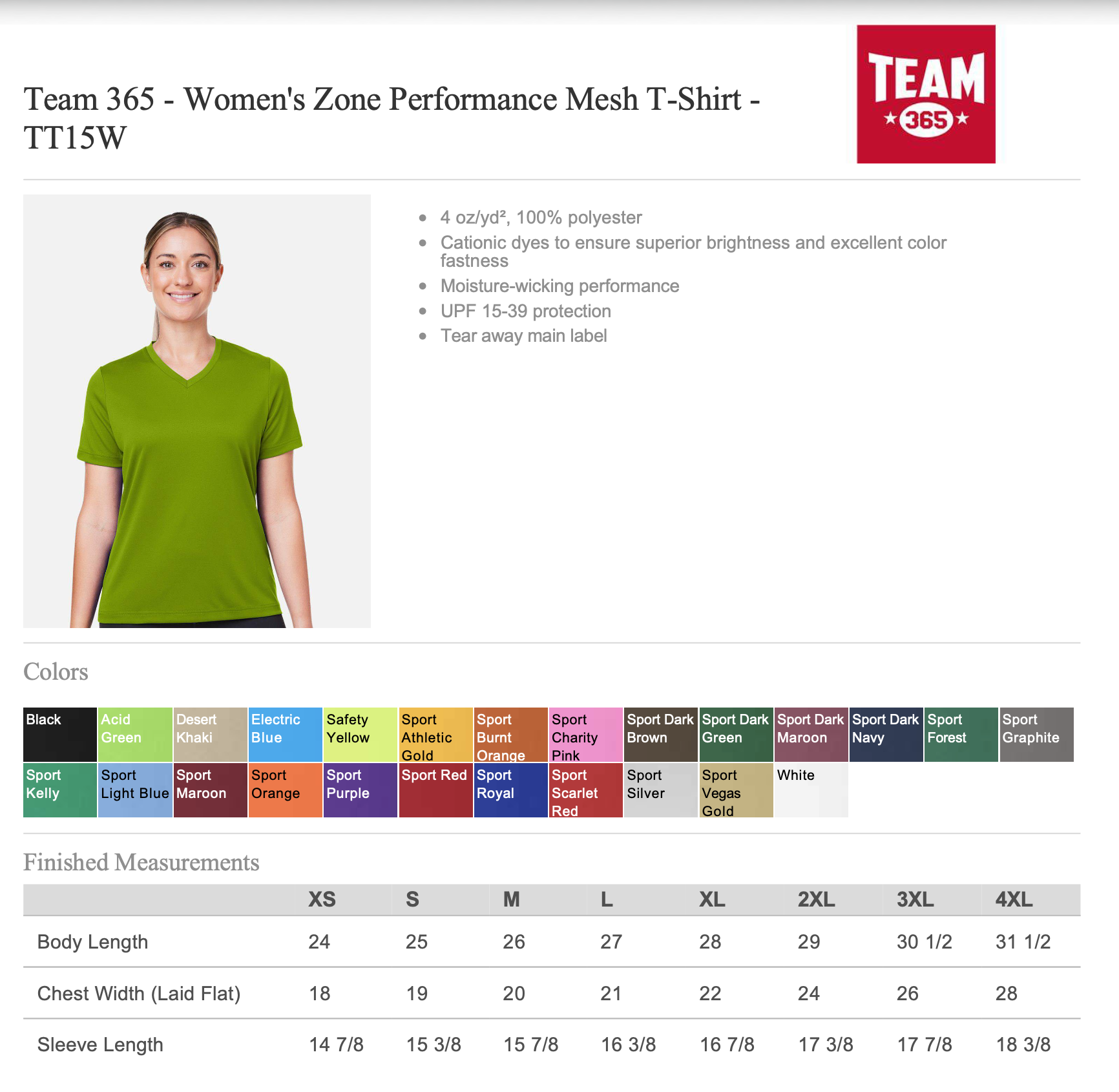 TT15W – Team 365 Women’s Zone Performance Mesh T-Shirt