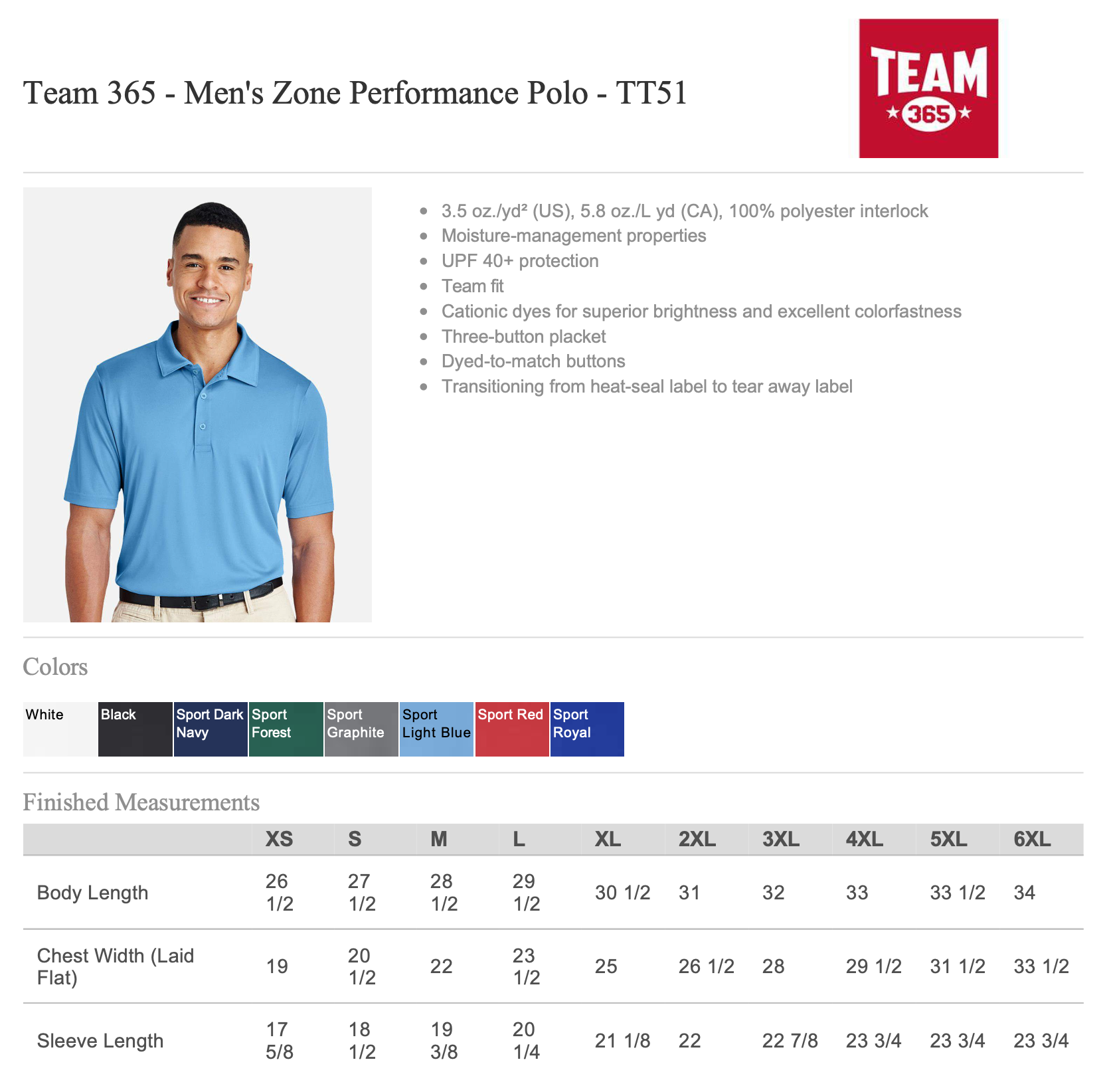 TT51 – Team 365 Men’s Zone Performance Polo
